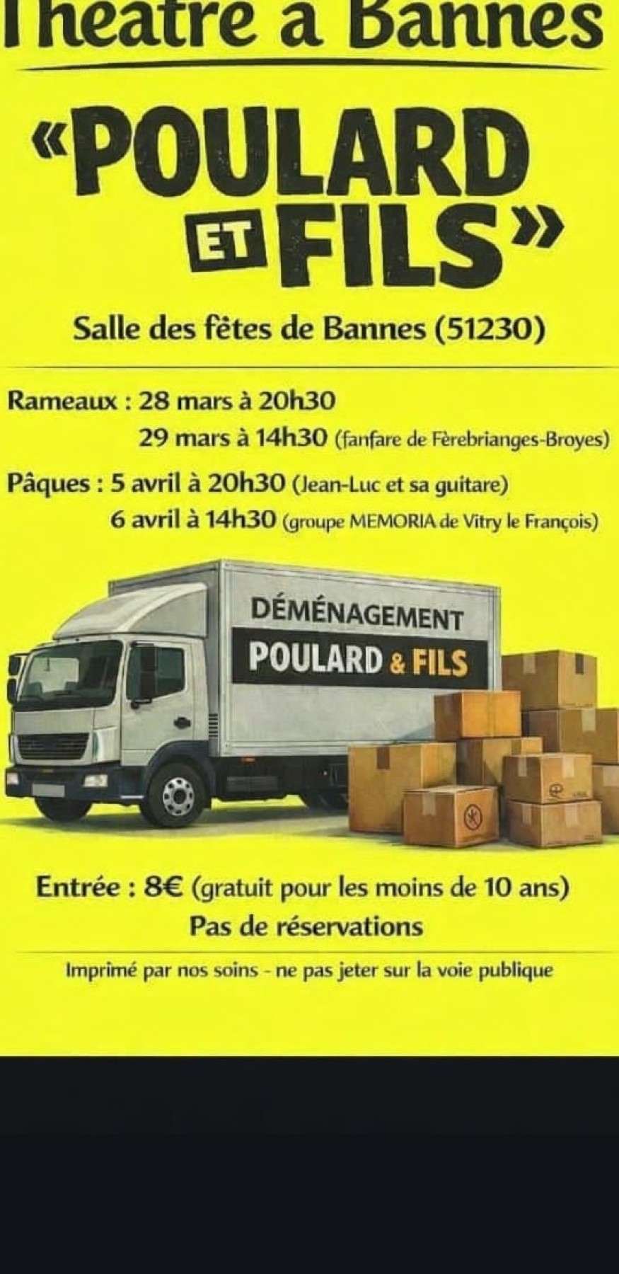 La commune de Bannes s’apprête à accueillir une nouvelle animation culturelle avec la pièce de théâtre « Poulard et Fils », qui sera jouée à la salle des fêtes.