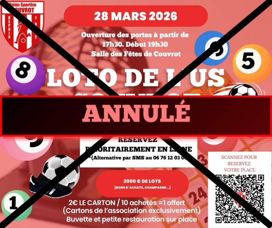 C’est une déception pour les organisateurs comme pour les participants : le loto prévu ce samedi 28 mars 2026 à Couvrot n’aura finalement pas lieu.
