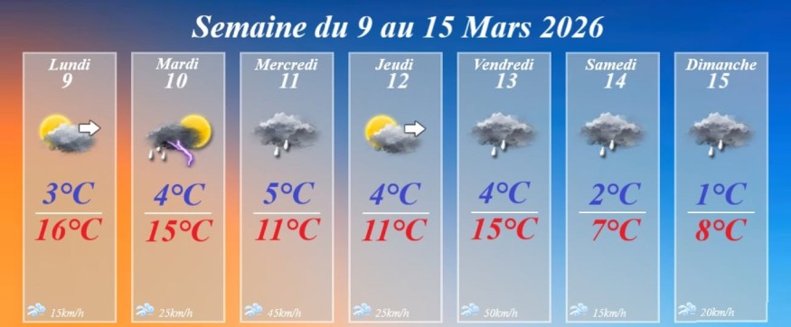 La semaine du 9 au 15 mars 2026 s’annonce changeante dans le Grand Est, avec une alternance d’éclaircies, de pluie et surtout une nette baisse des températures à partir du week-end.