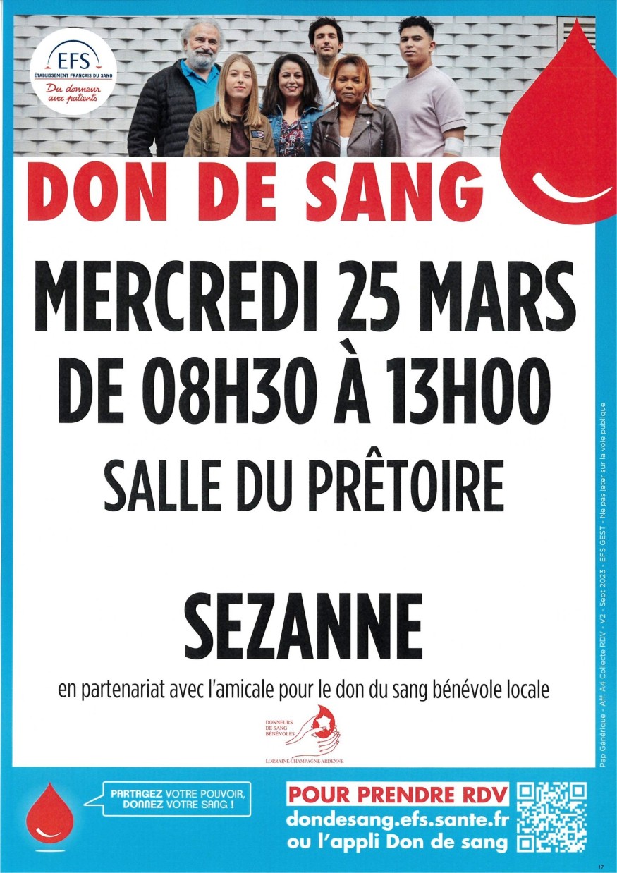 Une nouvelle collecte de sang est organisée à Sézanne ce mercredi 25 mars 2026, une occasion essentielle pour venir en aide aux patients.